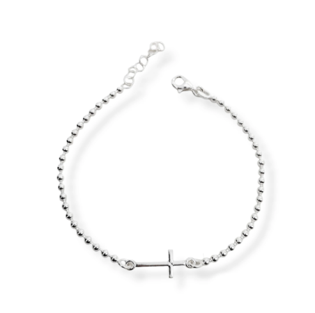 pulsera bolitas y cruz